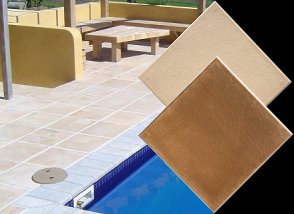 Distinctive pavers that look like leather, with a low skid surface. The pinstripe edging gives the pavers a tile-like look when they are grouted. Leatherstone pavers are produced at 450x450mm.